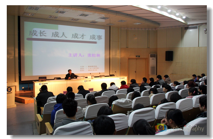 12月14日下午,由就业指导处主办,土木工程学院承办的 “企业家讲坛”在学术会堂举行。天虹基置业有限公司董事长张松林为土木工程学院400余名师生作了题为《成长、成人、成才、成事》的主题讲座。土木工程学院党总支书记何克祥、院长贺天柱、学工办主任程建卫等到场聆听讲座,何克祥主持讲座。