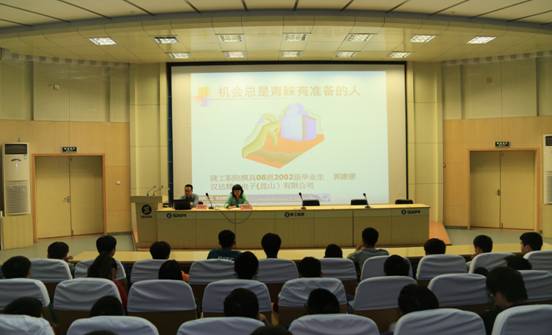 2015年10月12日,材料工程学院优秀校友,模具设计与制造专业2002届毕业生郭康康做客“校友大讲堂”,做了题为“职业生涯规划与选择”的专题报告。讲座由就业指导处主办、材料工程学院承办,材料工程学院党总支副书记郭旭华主持,部分专业课老师及材料学院400余名师生在学术会堂聆听了报告。
