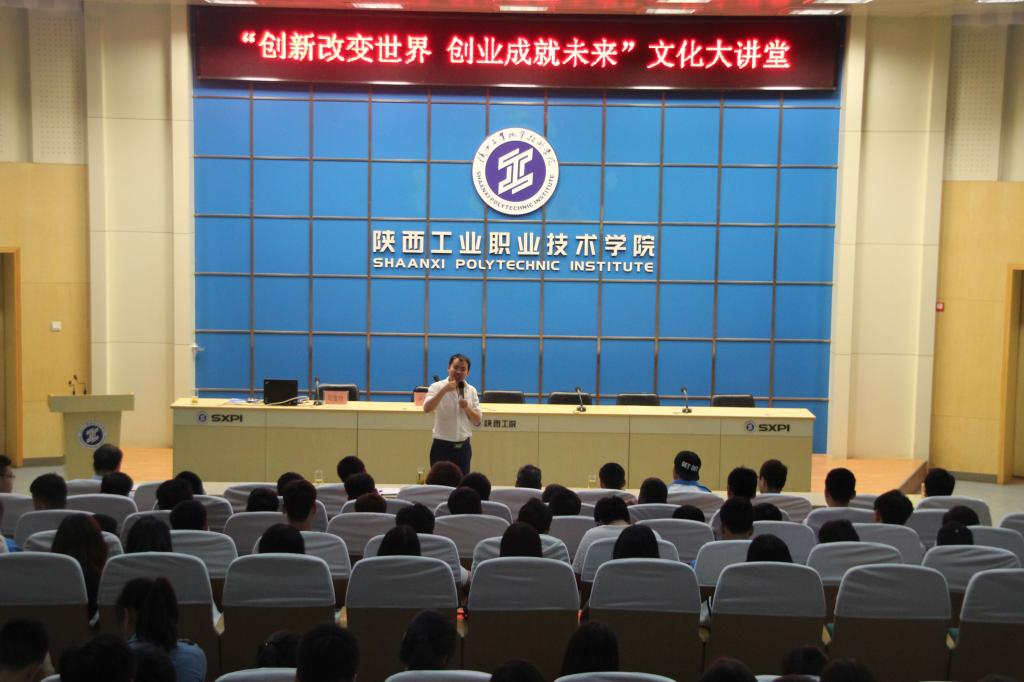 5月11日下午,陕西工院2016年“职业教育活动周”系列活动之“优秀校友讲座”在学术会堂举行。陕西工院优秀校友西安亿邦企业管理咨询有限公司创始人马宝玲作了专题讲座。校企合作处处长卢文澈、副处长王化冰及400余名师生代表参加了讲座。讲座由校企合作处处长卢文澈主持。