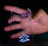 欧姆龙株式会社,开发出世界首例“透明版空间投影技术”,使用LED光源穿透透明板或薄膜,在空间投射出三维静态影像。