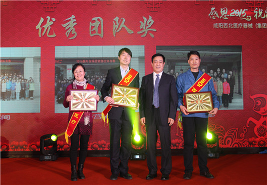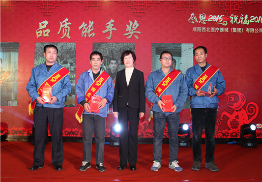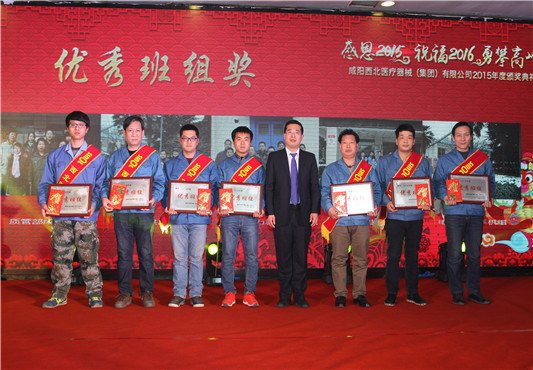 感恩2015,祝福2016! 2月17日下午2点,咸阳西北医疗器械(集团)有限公司2015年度颁奖典礼在庄严的国歌声中拉开序幕。公司新的领导班子全体成员、建厂老领导、老职工代表及奋战在工作生产一线的干部员工700余人参加了表彰大会。