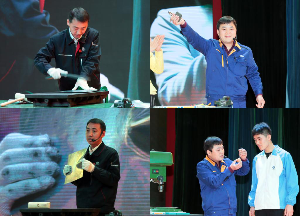 活动现场,中航工业西安飞机工业(集团)有限责任公司的钣金技师李世峰、中国兵器西北工业集团的钳工技师张新停先后为现场师生演练了飞机整流罩定型、盲配钥匙、生鸡蛋钻孔等精彩实操绝活,并与青年学生进行互动,回答现场及微信提问,分享他们从业以来敬业、精业的事迹与感悟。