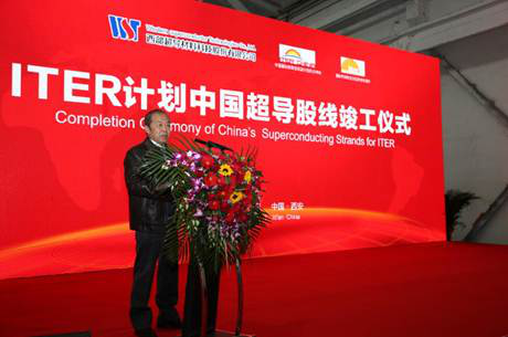 2017年3月13日上午,国际热核聚变实验堆(ITER)计划中国超导股线项目竣工仪式在西安市西部超导材料科技股份有限公司举办。西安经济技术开发区党工委副书记苏俊良、国家科技部核聚变中心主任罗德隆、ITER国际组织磁体部门负责人Arnaud Devred以及国内相关单位代表出席了仪式。